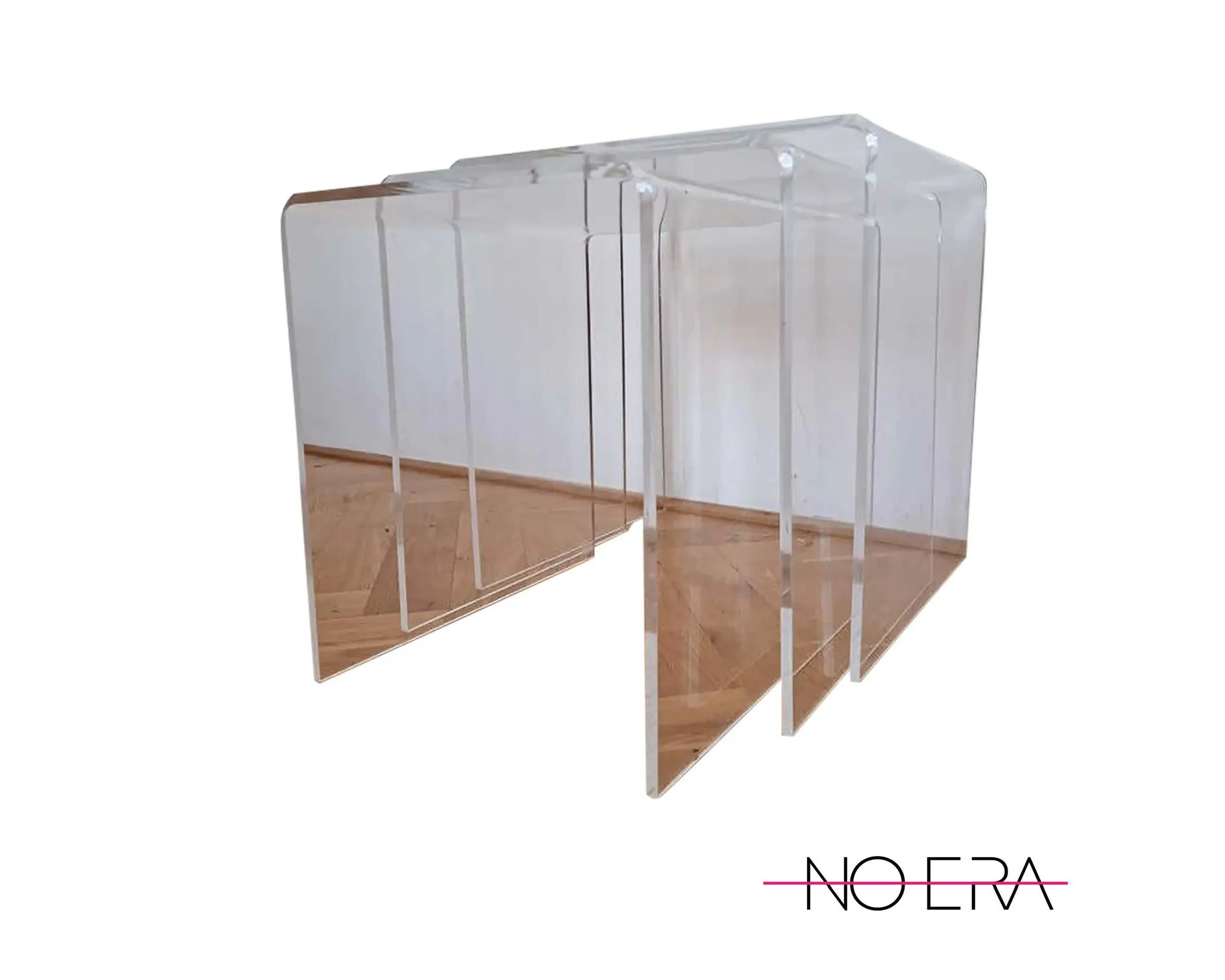 Vintage Barcelona Style Glass Architect Series Side Tables